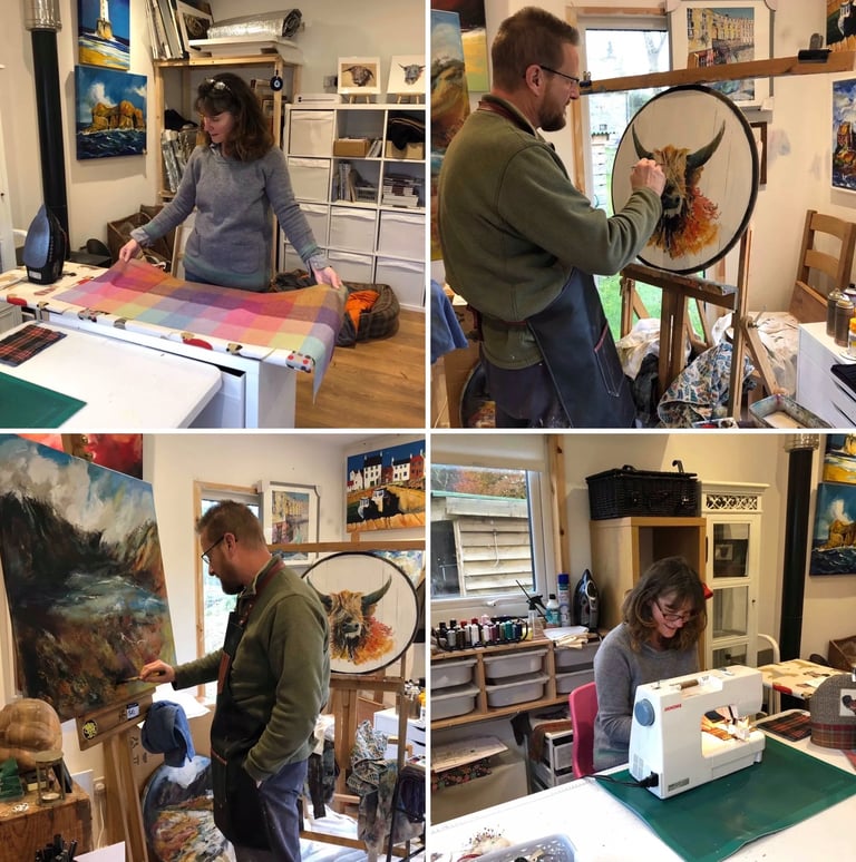 Cairngorm Gifts, is owned and run by Mark & Sally McCallum who work together as an artist and crafter in their studio in Kirkmichael, Perthshire.Here at Cairngorm Gifts, quality is the top priority from Scottish sourced materials and unique products to excellent customer service. Mark & Sally strive to deliver a personalised and reliable service to ensure you go home happy with a handmade gift from Scotland. They want to make your shopping experience memorable. If you have any questions fill out the contact form, or visit the working studio on the edge of the Scottish Cairngorms.
