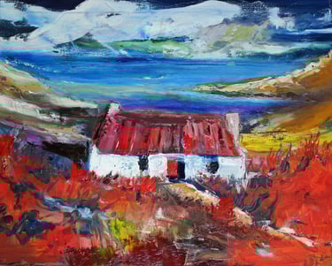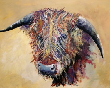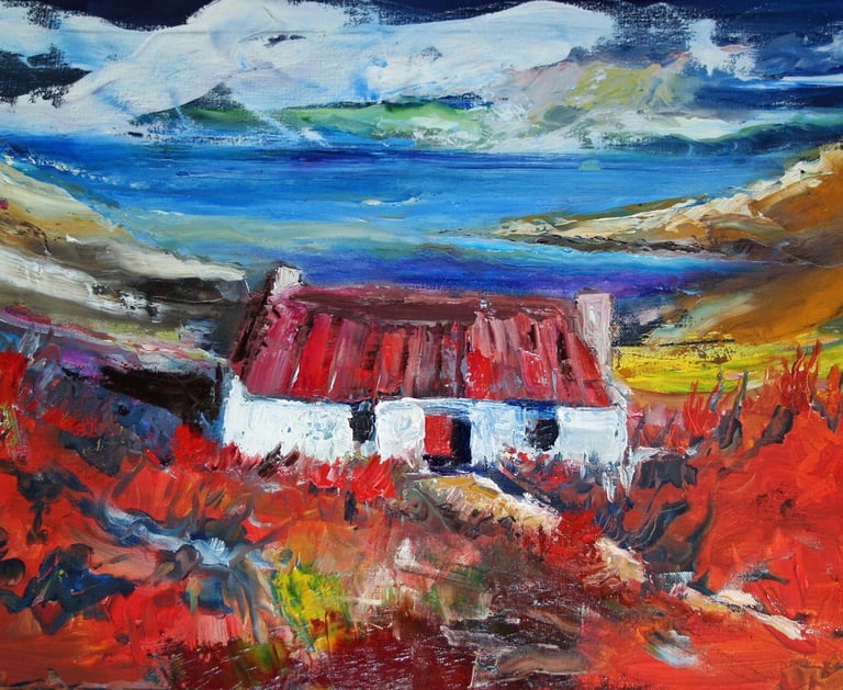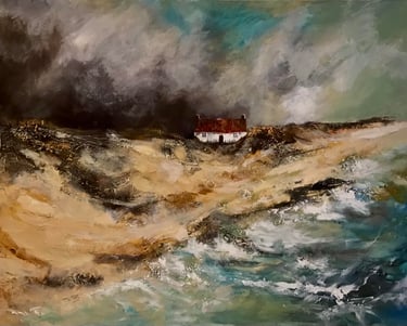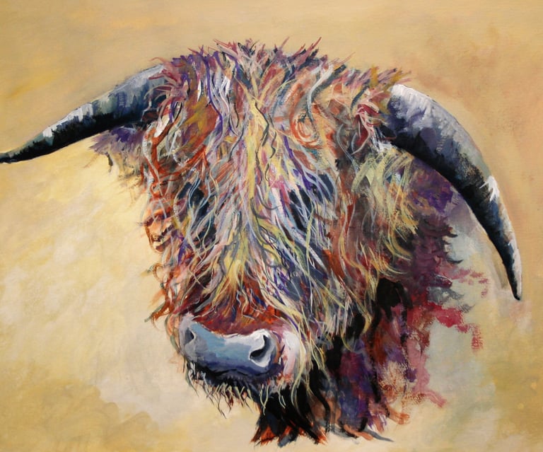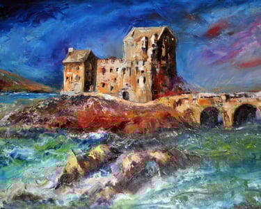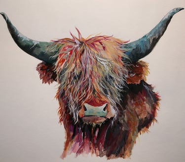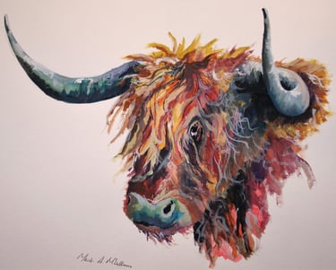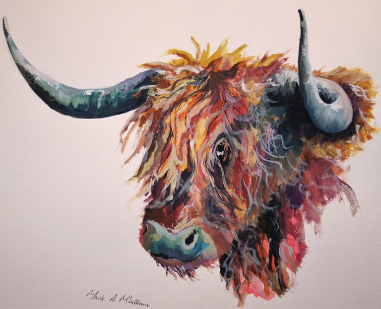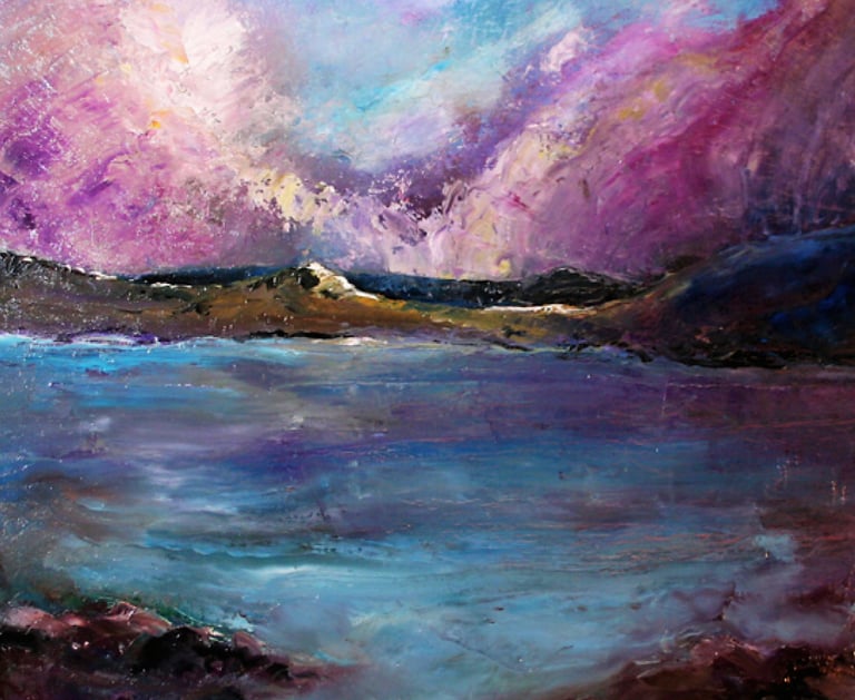 He fully explores the outstanding and breathtaking landscape that Scotland has to offer. His paintings reflect the ever changing mood of remote sceneries, dramatic skies and vast beaches, as well as the colourful mountain flora, geography and iconic Highland animals.